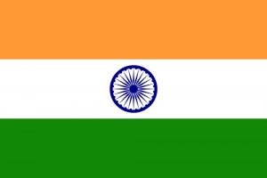 The Indian flag is a charged horizontal tricolour with in the middle an emblem. The used colors in the flag are blue, orange, white, green. The proportion of the Indian flag is 2:3. The Flag of India was adopted in 1947.